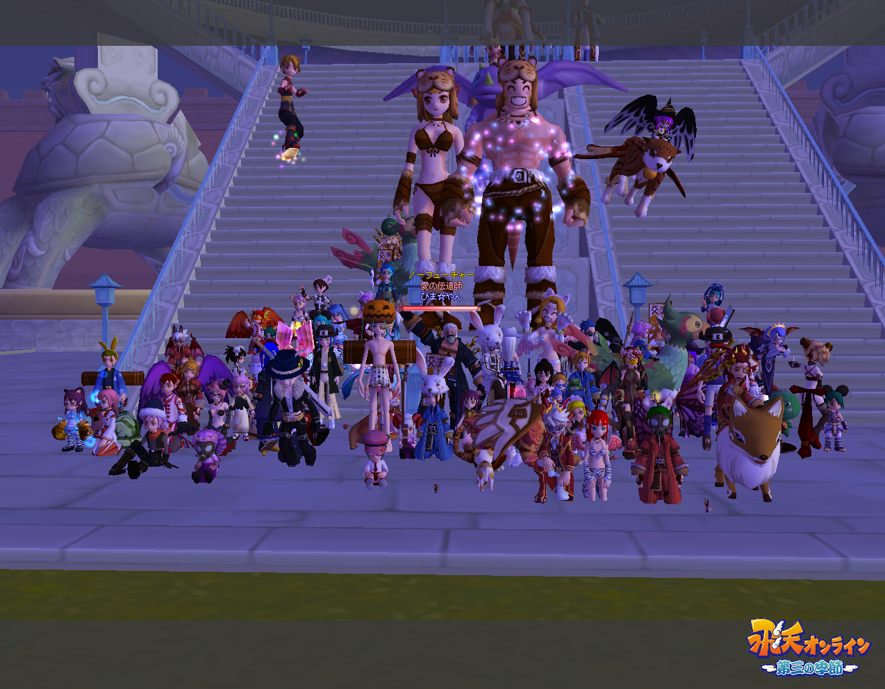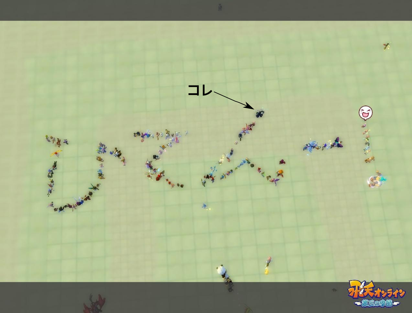 イベント内容については、まずボスキャラ討伐イベントを行い、引き続き、各プレイヤーキャラを並べて人文字を作ってみよう、という内容でして。なかなか面白い内容のモノでした。